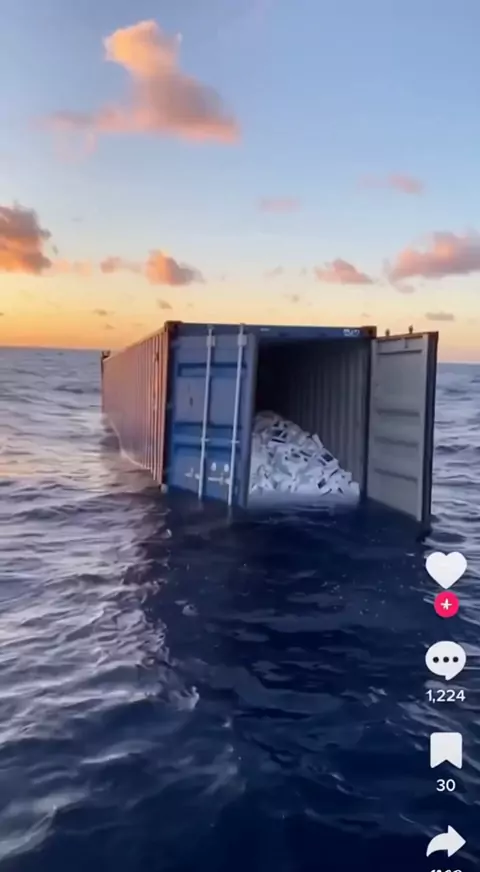 Do nada… achei um container LOTADO de iPhone boiando no meio do mar. Se for bênção eu recebo, se for golpe eu devolvo… mas antes deixa eu testar um aqui 😂📱🌊” #iPhonePerdido #AchadosENãoPerdidos #SorteGrande #DoNadaApareceu #históriapracontar