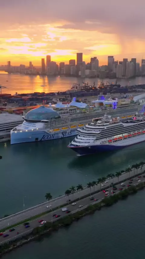 Conquest passing Icon of the Seas at PortMiami#cruise#iconoftheseas#miami#messi#cruisetok