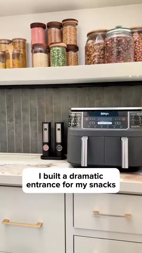 The Shrimp says I didn’t just build a pantry, I built a statement piece. This door is the exclamation mark ❗️ 🙌 #pantrymakeover#dreampantry#pantrygoals#diyprojects#diyhome#diytutorial#doityourselfproject#diyhomeimprovement#homerenovationideas#doityourself#homereno#kitchentrends#pantryreno#bifolddoors