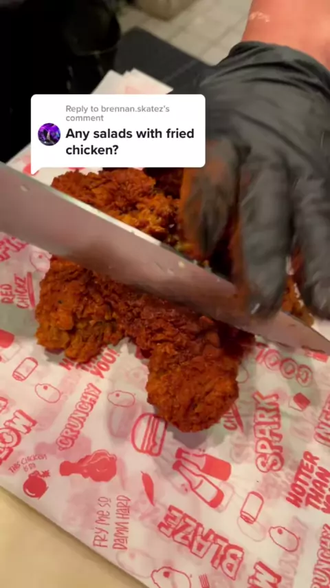 Replying to @brennan.skatez something like this bro?#fried#chicken#salad#theredchickz#friedchicken#hotchicken#losangeles#la#sauce#coleslaw#culvercity#dtla#pickle