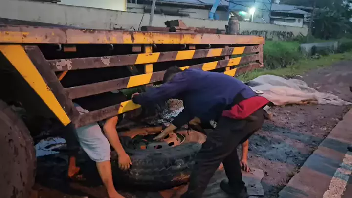 Driver Spj T684 Slamet Riyanto Muatan Miring Senin,02-02-2026