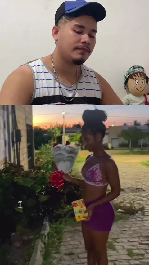 Mulher dando flores para o namorado 💋 #casal #flores