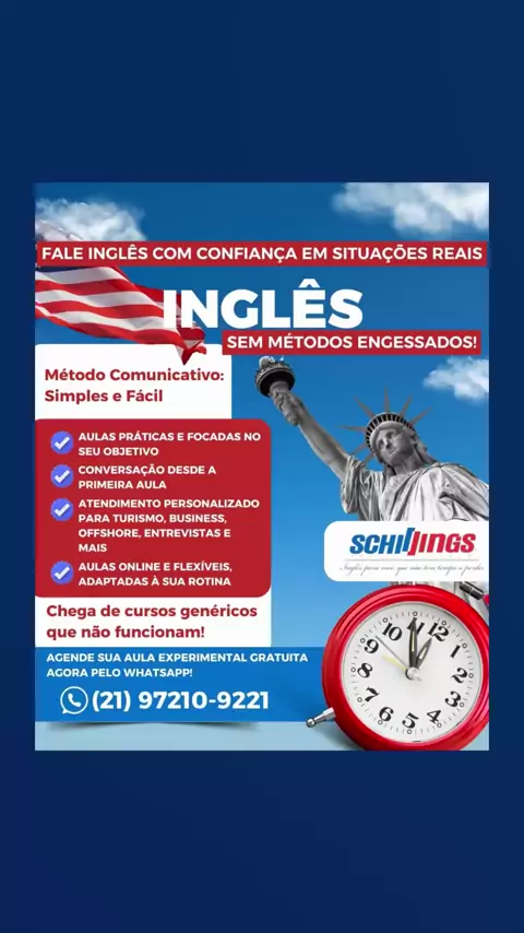 Convite Especial — *Experimental Class* Schilling’s O Schillings convida você para conhecer o curso de Inglês com uma abordagem comunicativa diferenciada, onde o aprendizado acontece de forma próxima à realidade, rápida e interativa. ✨ Venha vivenciar uma aula! Você participa, sente o método na prática e decide com total liberdade se quer continuar essa jornada com a gente. 📩 Vamos agendar sua aula experimental? Entre em contato com a gente! +55 21 97210-9221 #inglês #curso #online #aulas #