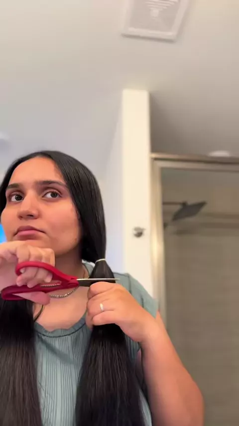 women selfie long hair cut with siscors to long bob#Home#haircut#women##viral