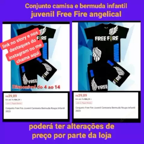https://s.shopee.com.br/LTeMQMR7t ☝☝ Conjunto camisa e bermuda infantil juvenil Free Fire angelical Valor:R$39,89. Material: Algodão Tamanhos: 8/10/12/14/16 anos. . . . . #freefire #conjuntoinfantil #roupadecriança #juvenil #bermuda