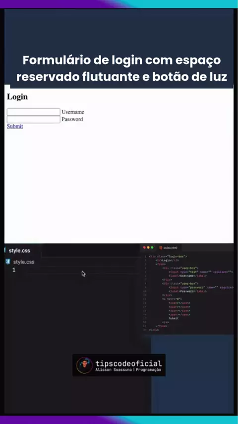 Formulário de login com espaço reservado flutuante e botão de luz #html5 #css3 #tipscode
