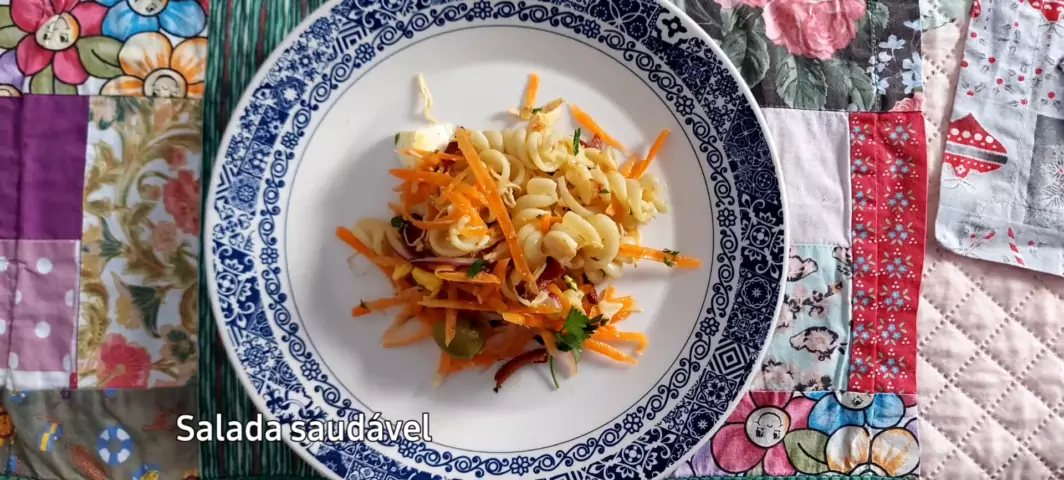 Salada fitness. Macarrão barilla, cenoura, ovos,bacon, cebola roxa, castanhas, uva-passas, cheiro verde,azeitonas e azeite (fique a vontade para usar maionese light) #macarrão #chicken #food #Comida #cozinha