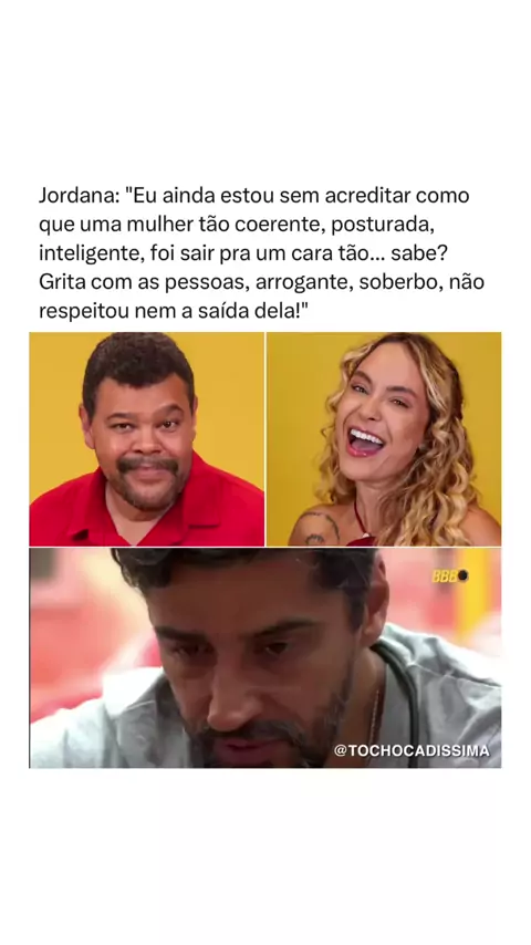 Jordana: “Eu ainda estou sem acreditar como que uma mulher tão coerente, posturada, inteligente, foi sair pra um cara tão... sabe? Grita com as pessoas, arrogante, soberbo, não respeitou nem a saída dela!” O QUE ACHARAM?! 🔗 Siga @tochocadissima para mais notícias! #BBB26 #RedeBBB