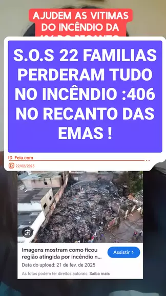 Por favor,ajudem essas vítimas. São mais de 22 famílias que perderam literalmente tudo e ficaram somente com as roupas do corpo. Muitas crianças,se quer,ficaram com um par de chinelos ou uniforme , ou ainda material escolar. Se Deus tocar no seu coração,marque algum influenciador ou personalidade,para que essa pessoa nos ajude a dar visibilidade para essa situação. O local aonde ocorreu o incêndio é:Quadra 406 conjunto "F". Falar com a Bia Borges,que representa os moradores afetados.