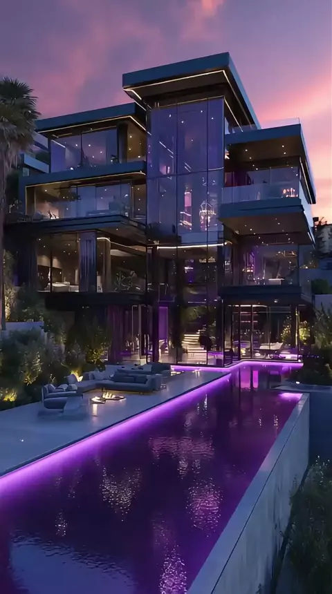 Você gostaria de morar nesta mansão, onde luzes roxas criam uma atmosfera deslumbrante? #Vem2026NoKwai #wallpapers #Vibes