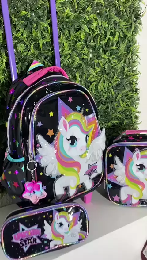 Kit Escolar Menina Mochila com Rodinhas, Lanc heira e Estojo Unicornio Power #voltaasaulas #voltaasaulas #mochila #material #shopkwai