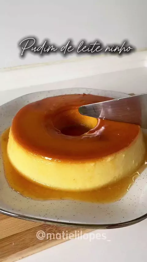 Pudim de leite ninho Ingredientes: 3 ovos 1 caixinha de leite condensado Mesma medida da caixinha de leite condensado de (leite). 3 colheres de leite ninho Calda: 1xícara de açúcar 1/2 xicara de agua Fiz em banho maria na boca do fogão e ficou 30 minutos. #Pudim #receitas #food #viraliza