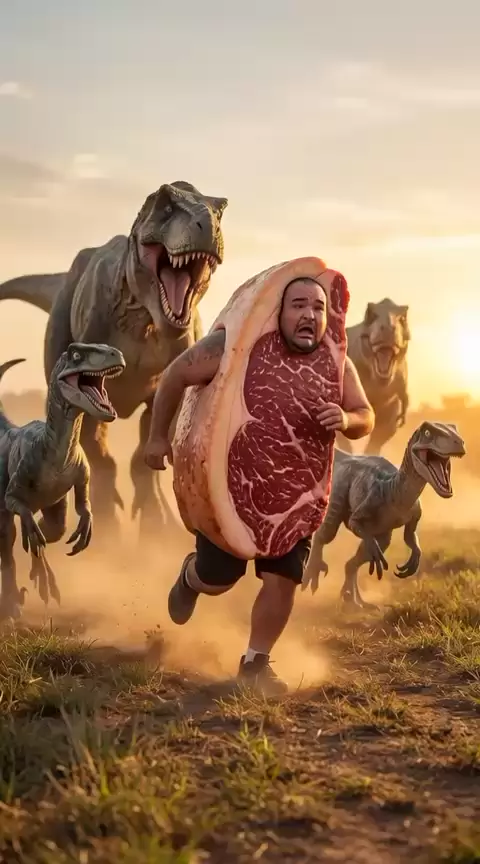 Eu vestido de picanha 🍖 correndo de dinossauros 🦖🥵 Socorrooooo !!!