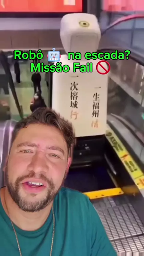 🤖💥 Tecnologia tá avançada... mas tropeçar na escada rolante? 😂 E derrubar geral? 😱 Corre ver essa cena icônica! 🌟 ⠀ 🌟 #Tecnologia #Risos #Robôs #Viral #Fails