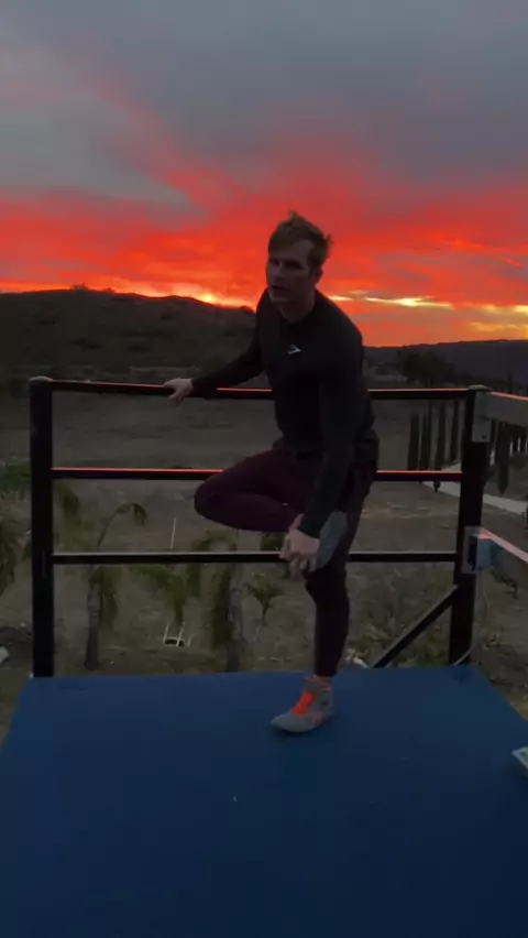 Such a beautiful sunset! Love having a wall in my yard #wallislife #trampwall #sunset