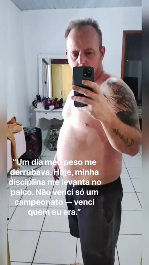 “Um dia meu peso me derrubava. Hoje, minha disciplina me levanta no palco. Não venci só um campeonato — venci quem eu era.”