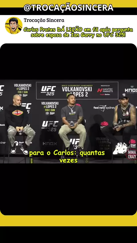 VEJA a REAÇÃO de Carlos Prates ao ser questionado sobre a Esposa de Ian Garry no UFC 325! Durante a coletiva de imprensa para o UFC 325 Carlos Prates foi surpreendido com uma pergunta vulgar de um fã, referindo a esposa do Ian Garry. O trash talk no MMA deveria ter limites ou vale tudo na hora de promover uma luta? Deixe sua opinião aqui embaixo! 👇 E se curtiu a análise, já se inscreve para não perder as próximas atualizações do mundo da luta! #UFC325 #CarlosPrates #IanGarry #mmabrasil