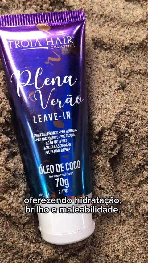 Leave-in Plena Verão da Tróia Hair: cuidado essencial para todos os tipos de cabelos. Ideal para quem busca hidratação intensa, seja para cabelos ressecados, quebradiços, grossos; cacheados, ondulados ou lisos. ☀️ #verão #cabelo #beauty #troia