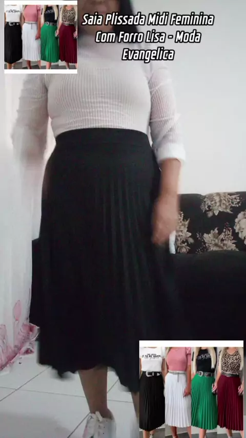 Saia Plissada Midi Feminina Com Forro Lisa - Moda Evangelica