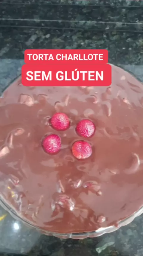 Torta Charllote sem Glúten Ingredientes: Creme Belga Ganache de chocolate Morangos picados Biscoito Champanhe sem Glúten #Sobremesa #Glutenfree #Semgluten #Receita