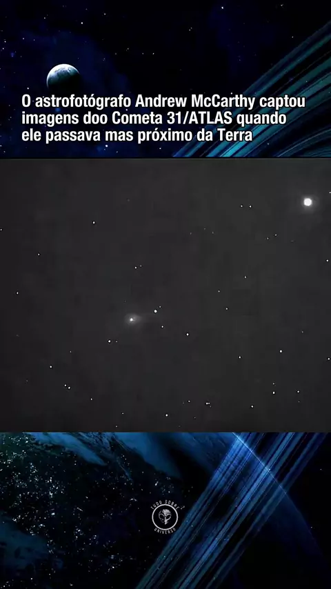 Este vídeo mostra o Cometa 3I/ATLAS durante a sua aproximação mais próxima da Terra, capturado pelo astrofotógrafo Andrew McCarthy usando imagens de resolução alta e rastreamento cuidadoso. As imagens destacam a estrutura e o movimento do cometa contra as estrelas de fundo, oferecendo um olhar raro e detalhado da perspectiva da Terra. #cometa #3IATLAS #astrofotografia #universo #fyp