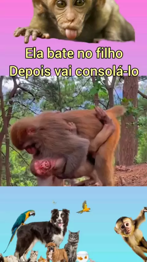 Mãe macaca arrebenta com cara de filhote em seguida vai consolá-lo #Macaco #Mae #animais #PetsHilarios #EstrelaDeFamília