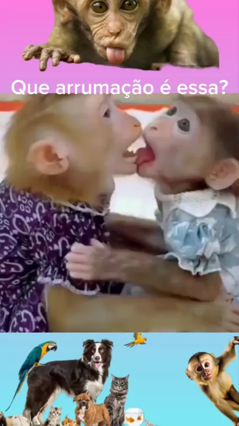Macaquinhos se beijam cheios de ousadia #macacos #animais #CrescerNaFamília #Ultra10kvis