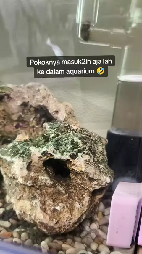 Gelas kaca batu ornamen rumput sintetis soil tanaman hidup juga ada Eh molly betah dan beranak, tapi pada ke sedot pompa kasian banget 😭