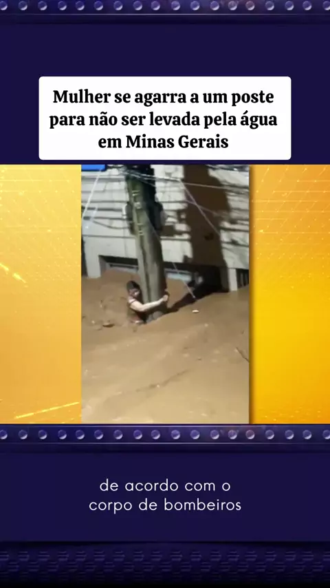 Mulher se agarra a poste para não ser levada pela água em Minas Gerais #noticias #ultimasnoticias