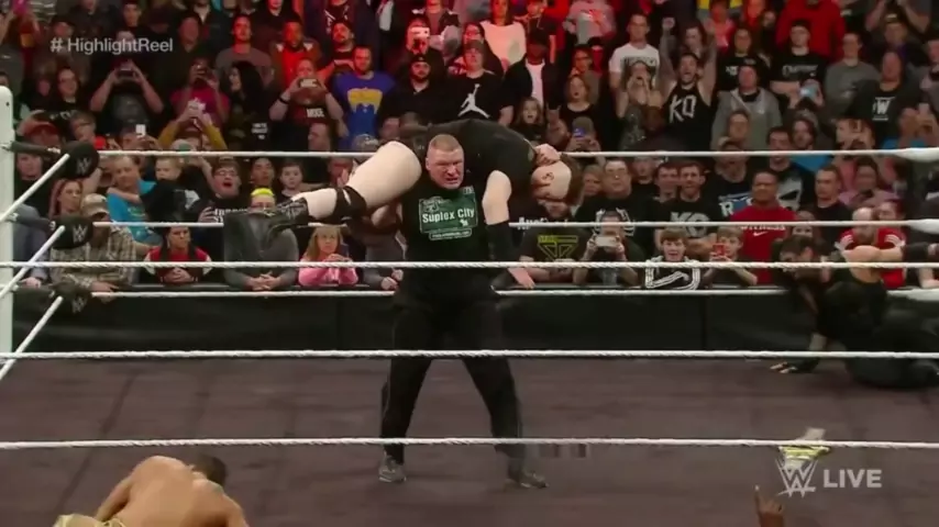 Roman Raines Rom b n R f sinaliza e Brock Lesner Bro d k L f s n b r aparece em "Th f highlight R f f l".