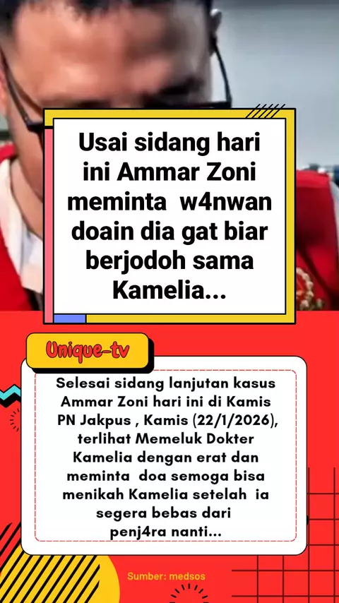 Usai sidang hari ini Ammar Zoni meminta w4nwan doain d ia gat biar berjodoh sama Kamelia... !?!! #KASUS #Artis #ammarzoni #penjara #pacar