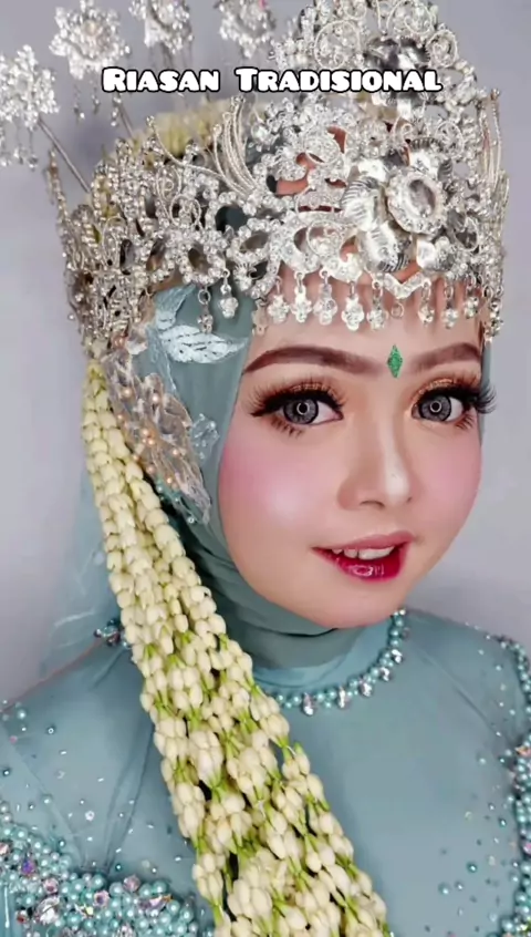 mbanya cantik banget pakai riasan tradisional warna tosca, bikin pangling #arahwaktu #recomendation #riasantradisional