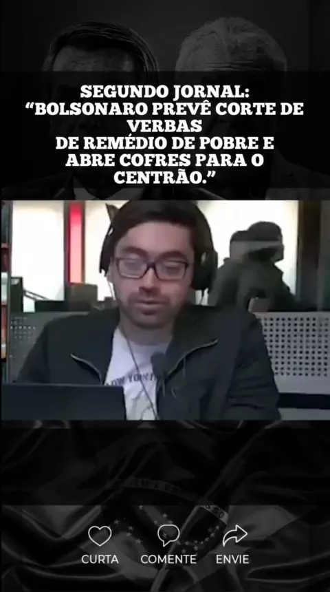 Segundo jornal: “Bolsonaro prevê corte de verbas de remédio de pobre e abre cofres para o centrão.” #noticias #politicoeconomico