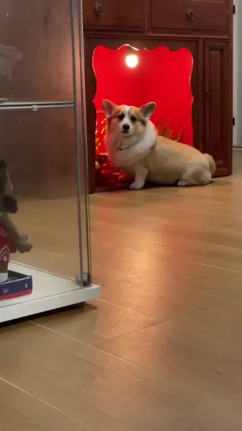 Corgi, que só quer comer, está olhando.