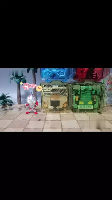 T-Rex jadi malam, Triceratops jadi naga emas, Dino Cube Burst 6 berkembang (bagian atas).
