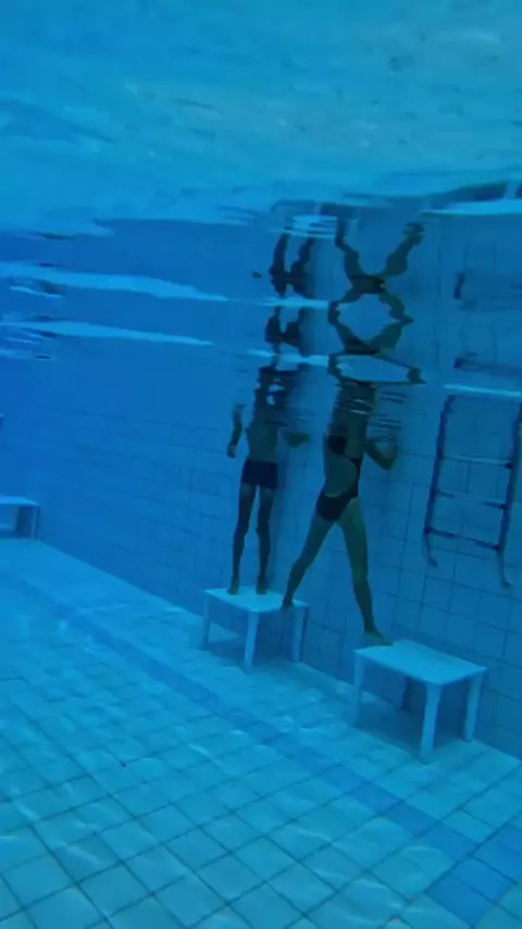Underwater NO FINS tandem swim 💙 ~ why swim alone when you can swim together. #nofins #swimmingunderwater #freedive #natação #swimming #natacion #swimmingpool #pool #piscina #esporte #sport #swimm