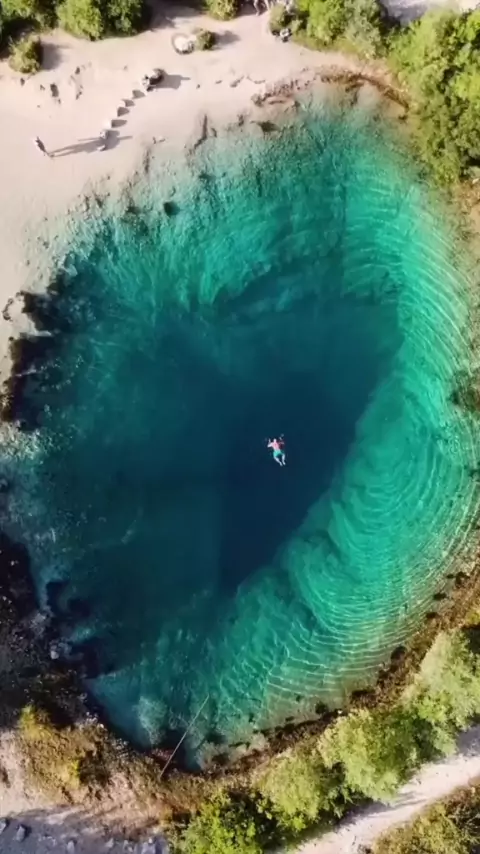 Este reservatório de água em forma de olho de dragão🐉 na Croácia, com uma temperatura de água de 8°C, é a nascente do rio Cetina. Ele nasce em uma nascente perto de uma pequena cidade chamada Ceti