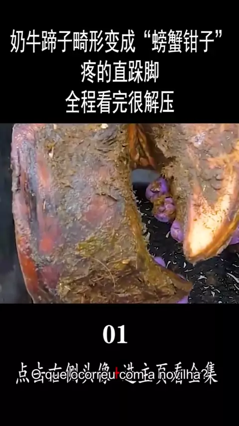 Com o clima frio, os calcanhares da vaca racharam, mas após várias reparações a vaca se recuperou. Um vídeo de relaxamento extremamente confortável mostra a reparação do casco da vaca para aliviar o estresse.
