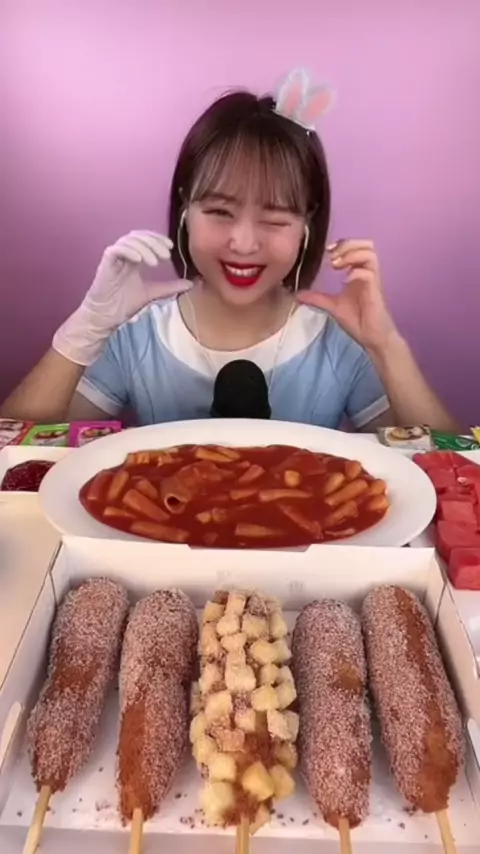 🔥Korean hot dog🌭and spicy tteokbokki🌶 #koreanhotdog #kfoodmukbang