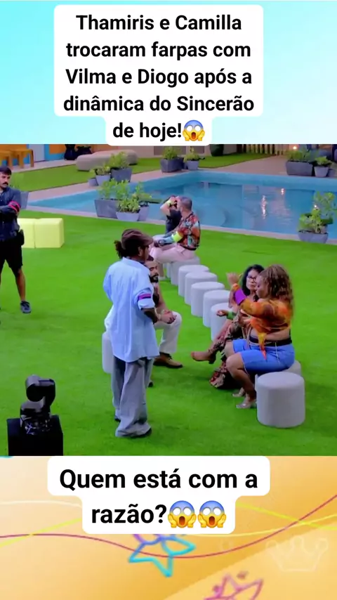 E o Sincerão continua rendendo!🔥 Thamiris e Camilla trocaram farpas com Vilma e Diogo após a dinâmica do Sincerão de hoje! De que lado você tá nessa briga? #bbb25​ #diogoalmeida​ #vilma​ ​ ​
