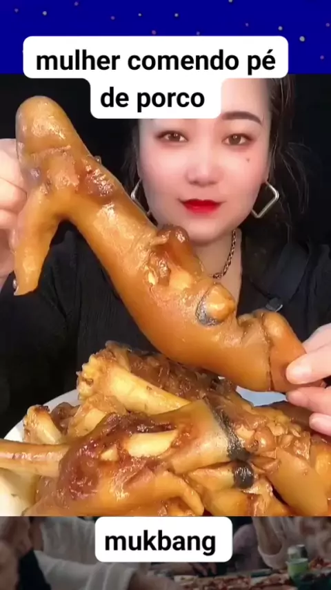 #mulher #comendo #pe de # porco #satisfatorio