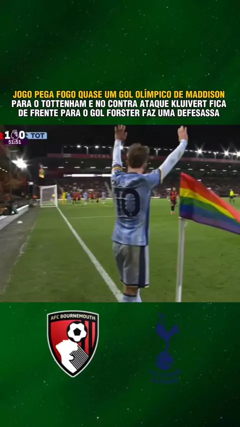 Jogo pega fogo quase um golaço olímpico de Maddison , e no contra ataque do Bournemouth Forster faz uma defesassa. #esporteviral #esporte #fofocadefutebol #bournemouthxtottenham #PremierLeague