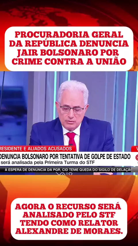 JAIR MESSIAS BOLSONARO É DENUNCIADO PELA PROCURADORIA GERAL DA REPÚBLICA POR CRIMES CONTRA A UNIÃO E O ESTADO DEMOCRÁTICO DE DIREITO, ALÉM DE TENTAVA DE GOLPE DE ESTADO, A DENUNCIA SERÁ ANALISADA PELO MINISTRO ALEXANDRE DE MORAES COMO RELATOR E A PRIMEIRA TURMA DO STF, TUDO INDICA QUE NESSE PRIMEIRO SEMESTRE. #Notícia #AlexandredeMoraes #Reportagem #BOLSONARO #fy