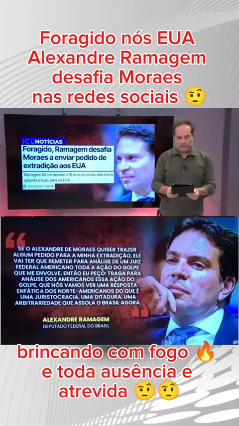 Foragido nós EUA Alexandre Ramagem desafia Moraes nas redes sociais 🤨 #noticiasdiarias #sejareporterdokwaisports #CraquesDaRuaNoKwai #viraliza