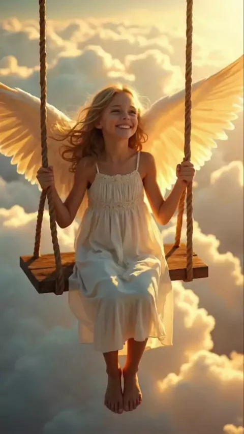 "Desde la cuna del alba, el angelito se mece en su columpio, no para huir del tiempo, sino para contemplar la serena certeza de que cada nuevo amanecer es un regalo rítmico de esperanza inmaculada y un suave susurro divino que nos invita a jugar de nuevo con la luz." 🌅