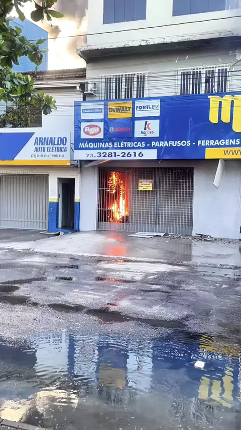 🔥🚒 Incêndio em Eunápolis Um incêndio de grande proporção atingiu uma loja de ferramentas na Av. Luiz Eduardo Magalhães, causando pânico e mobilizando o Corpo de Bombeiros. As chamas chegaram ao andar superior, e comerciantes vizinhos retiraram máquinas e equipamentos para evitar mais prejuízos. ⚠️ Área isolada | Bombeiros em ação 📍 Eunápolis – BA VIA41 NA DIREÇÃO DA NOTÍCIA