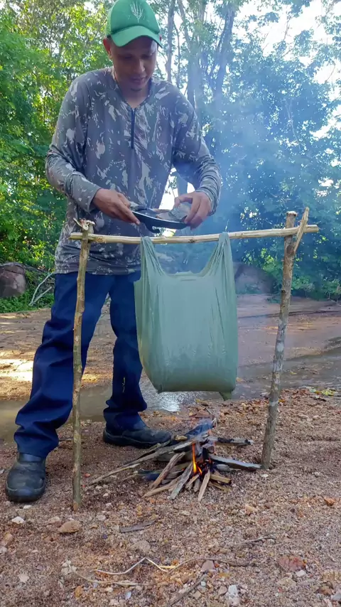 cozinhando peixe na sacola 🌵 #peixe #pescaria #SERTÃO #caatinga #pescador