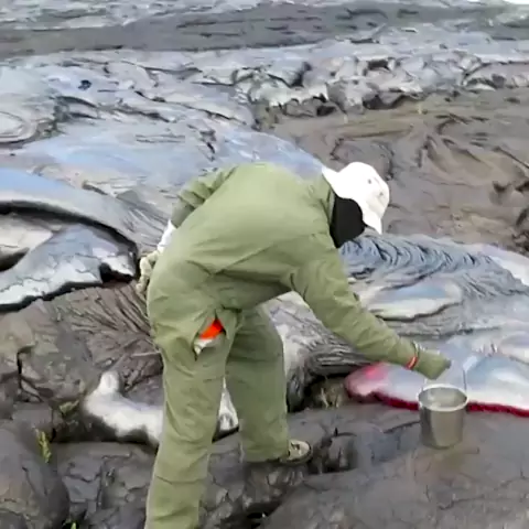 É assim que os geólogos coletam amostras de lava de um vulcão ativo #fyp #fy #Natureza