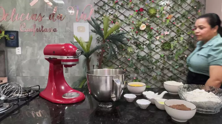 Pão de ló com emulsificante de chocolate 7 ovos ou 350g 440g de açúcar 480g de agua em temperatura ambiente 70g de emulsificante 670g de trigo 25g de amido 60g de óleo 120g de chocolate 50% cacau 25g de fermento químico. 5g de bicarbonato de sódio Modo de preparo no vídeo
