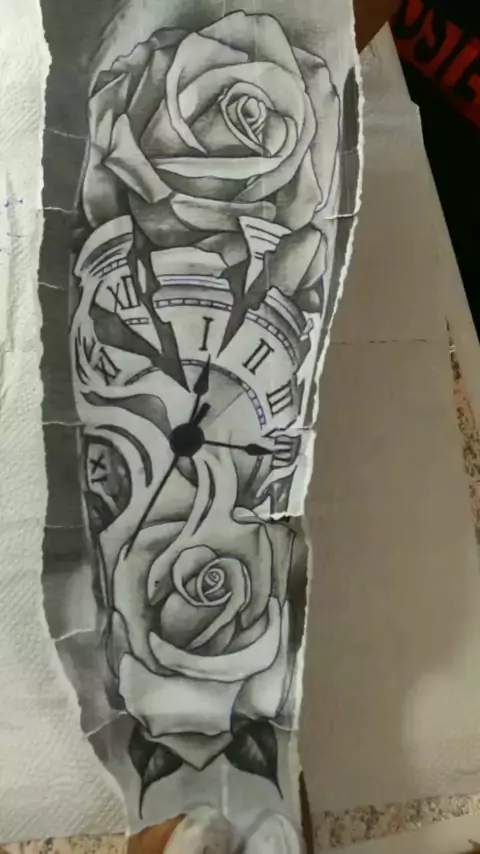 Tatto relógio e rosas #tatuagem #kwai
